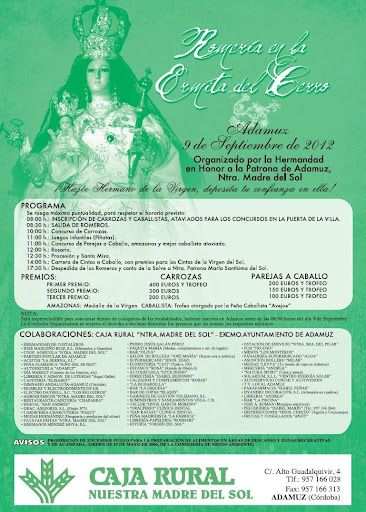 Programa Romería08:00: Inscripción de carrozas y caballistas ataviados para los concursos, en la Puerta de la Villa